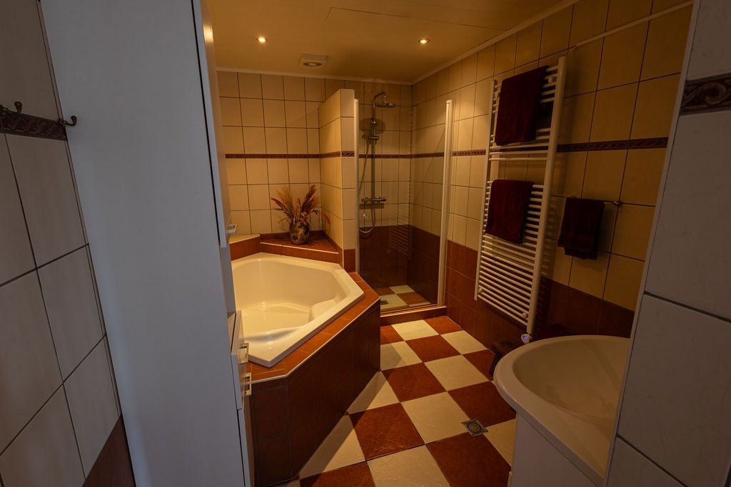 Op de 1e verdieping  is een toilet en twee ruime slaapkamers  met een twee keer tweepersoons box spring. Alle ruimtes worden verwarmd door centrale verwarming.
